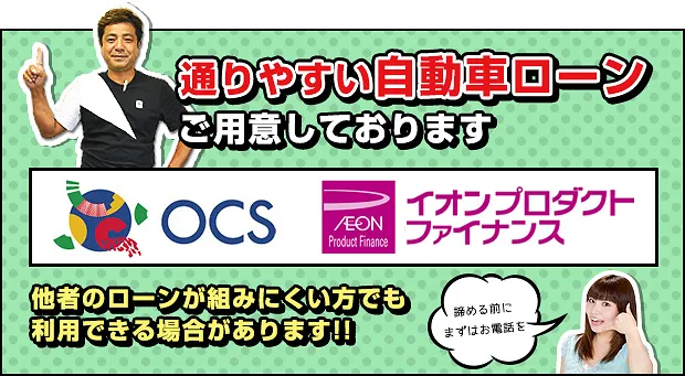 ドドンパ車店では、3社の自動車ローン会社と提携してますので、個人売買と違い、ご購入者がローンをご利用することができます。